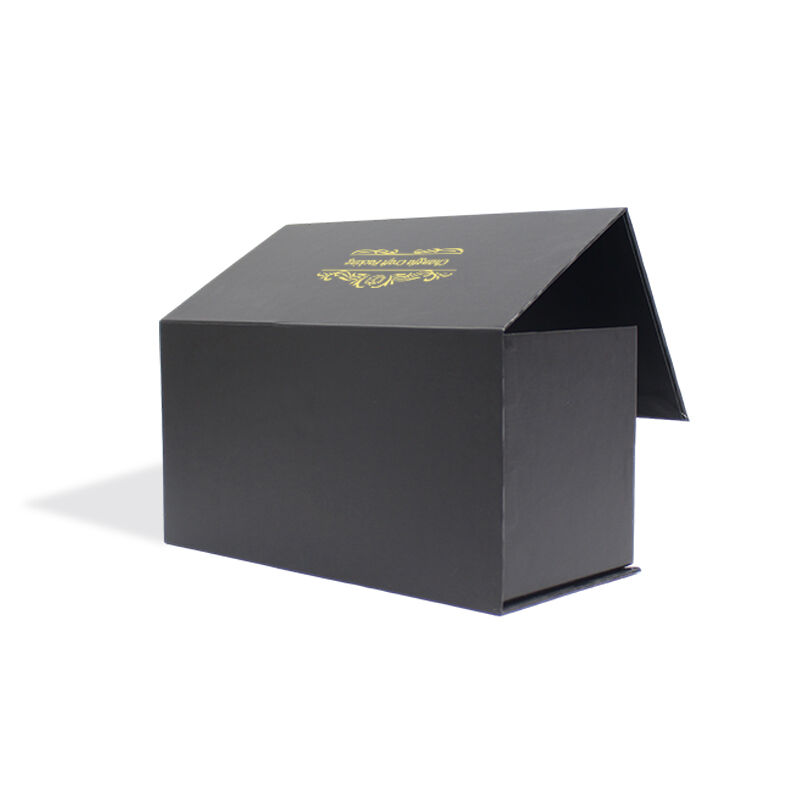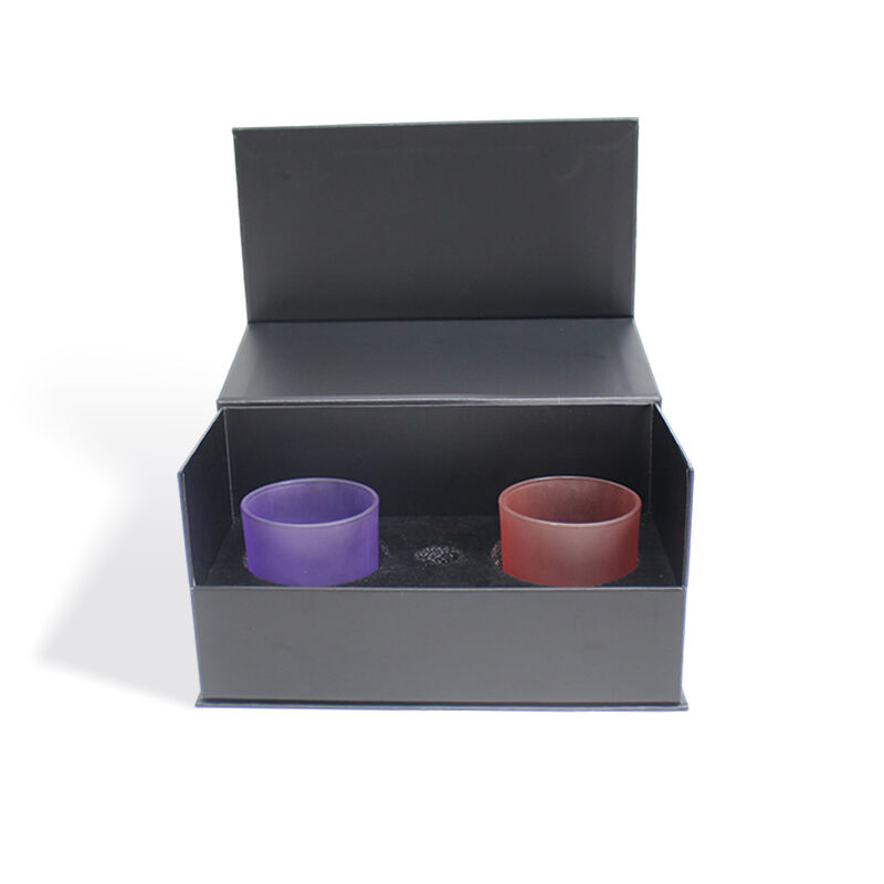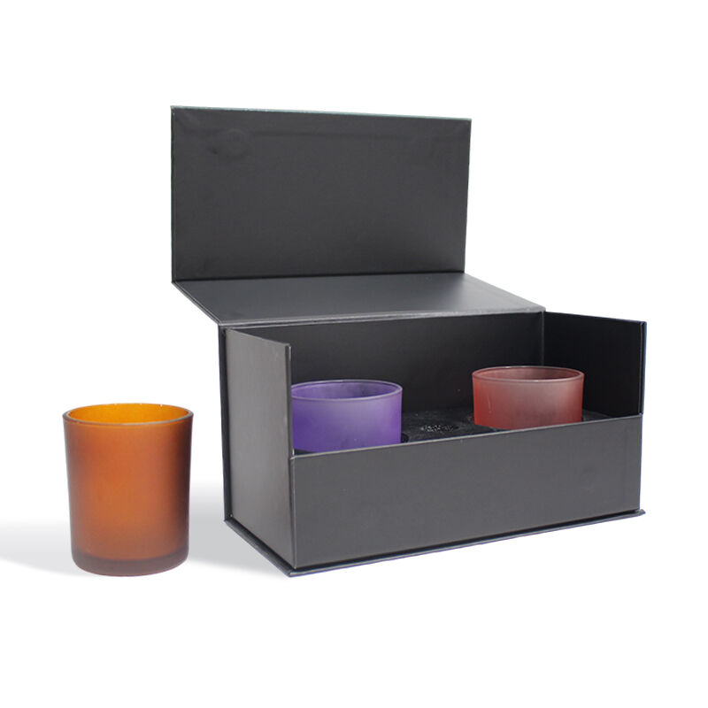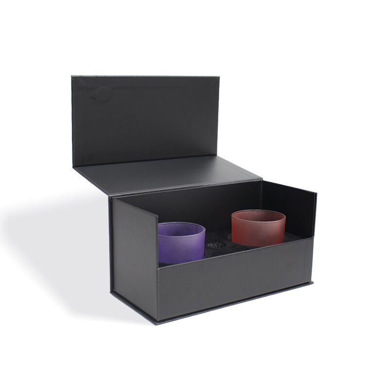 মোমবাতির জন্য ফোম ইনসার্টসহ সিএফ কালো কঠিন চৌম্বকীয় ক্ল্যামশেল গিফট প্যাকেজিং বক্স