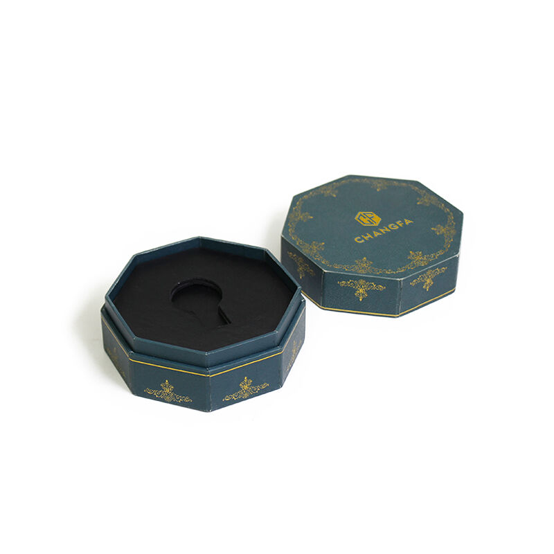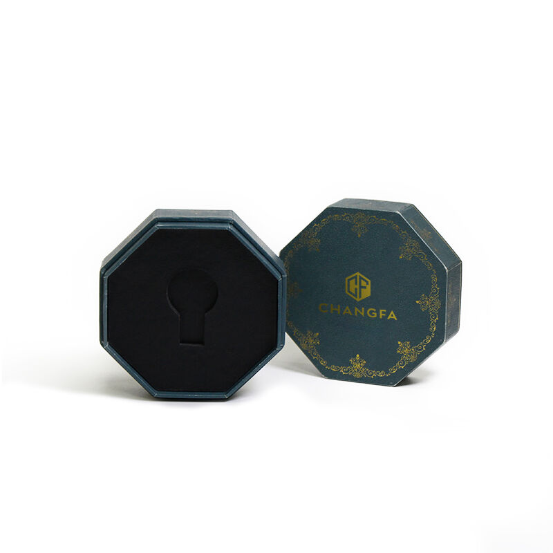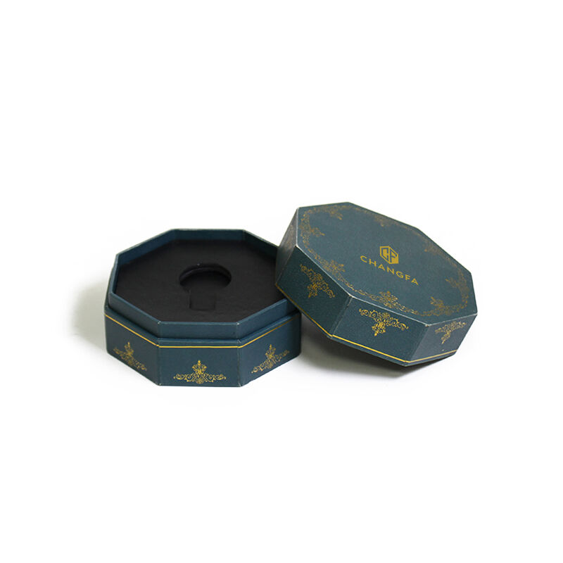 সিএফ উপহার প্যাকেজিংয়ের জন্য চকচকে ফয়েল স্ট্যাম্পিং লোগো সহ অষ্টভুজাকৃতির কাগজের বাক্স