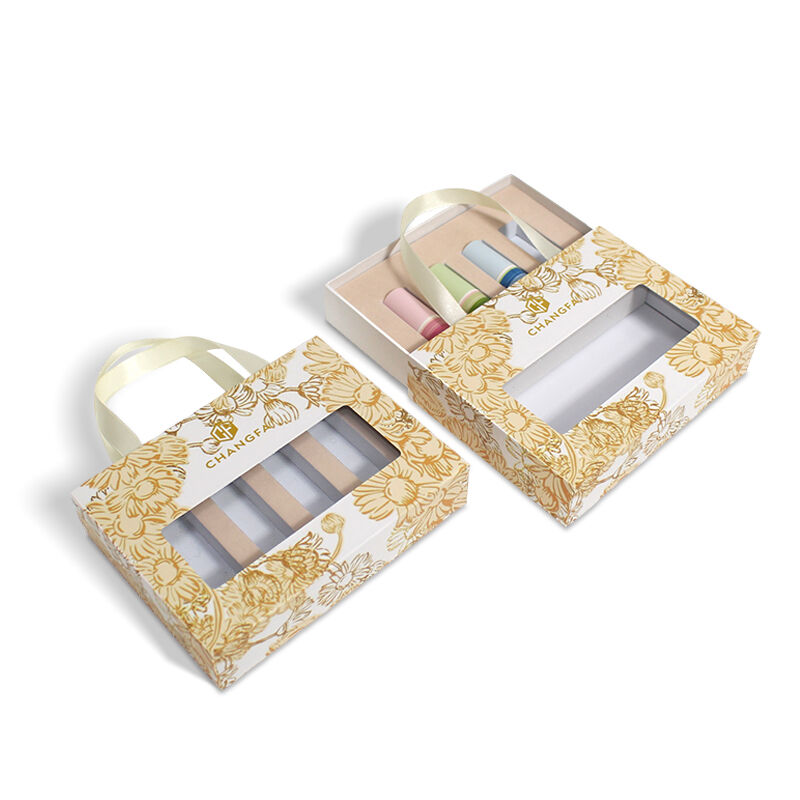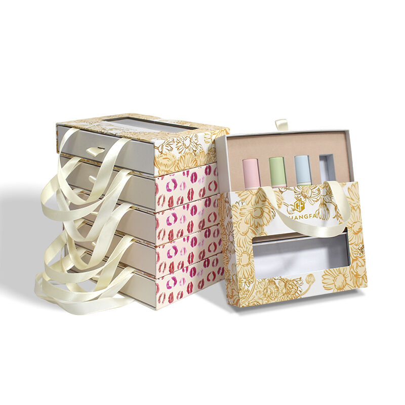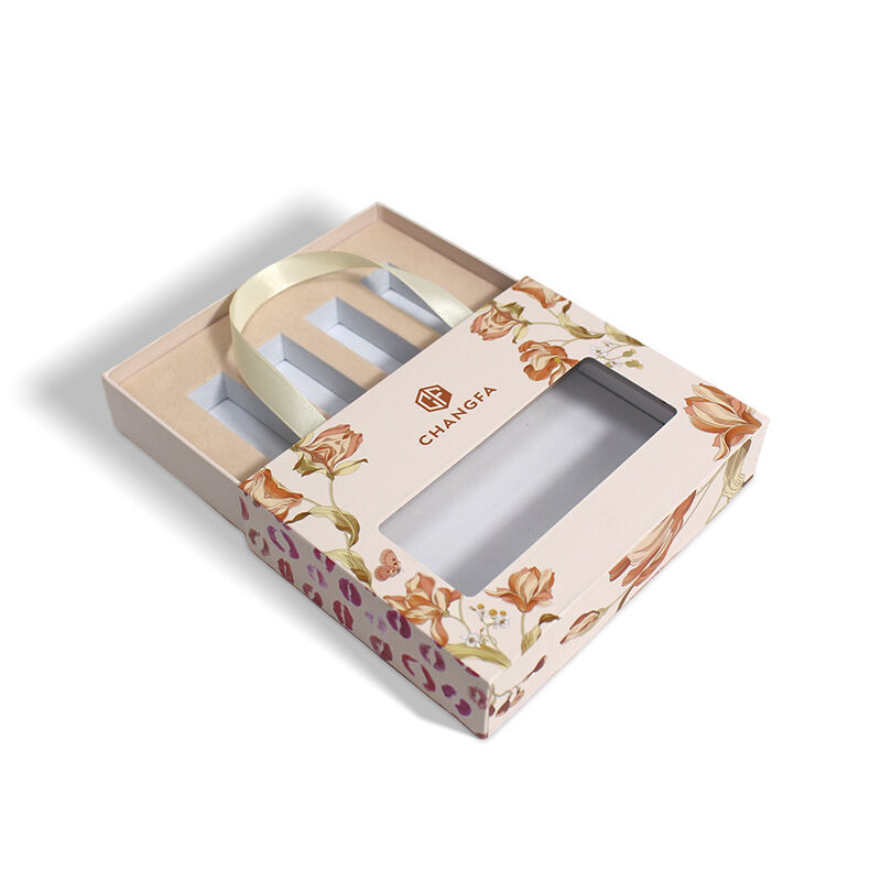 Cosmetic Drawer Box with Ribbon and Window with EVA velvet insert