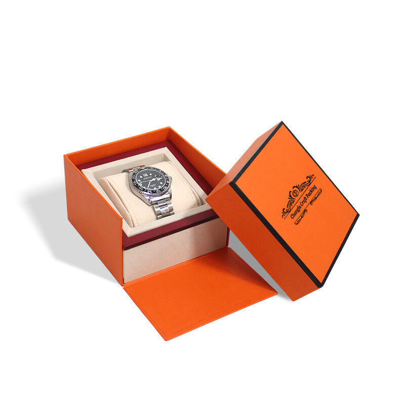 CF Oranssi kovapaperilaatikko vaahtosyötällä ja irrotettavalla kannella kellolaatikoksi