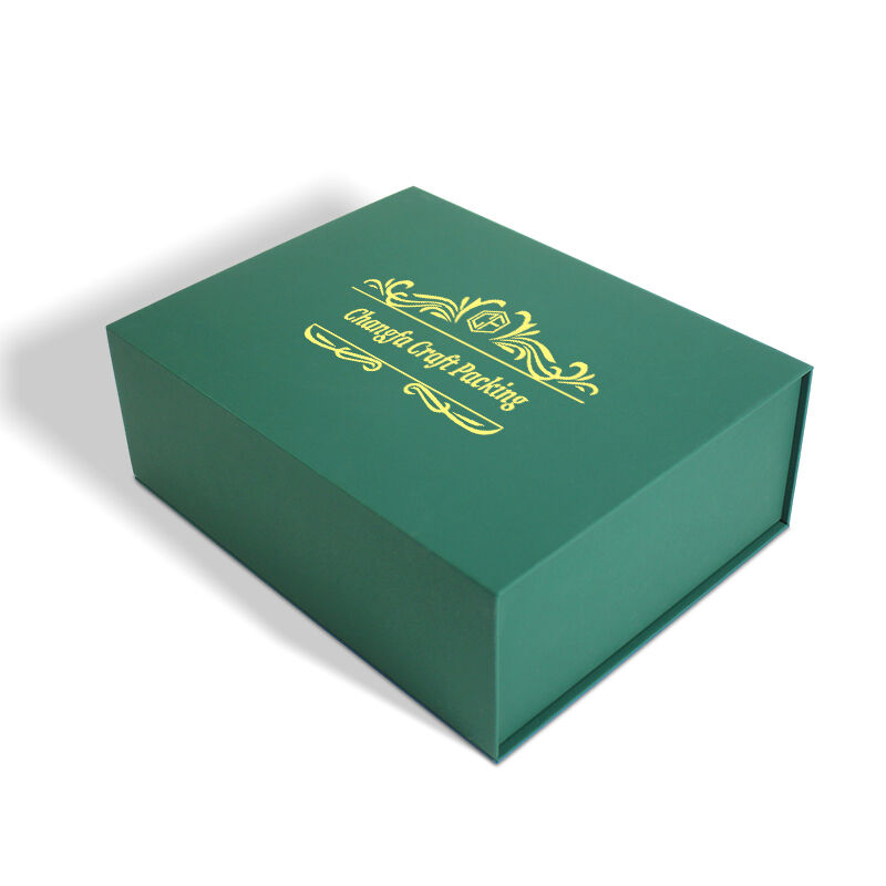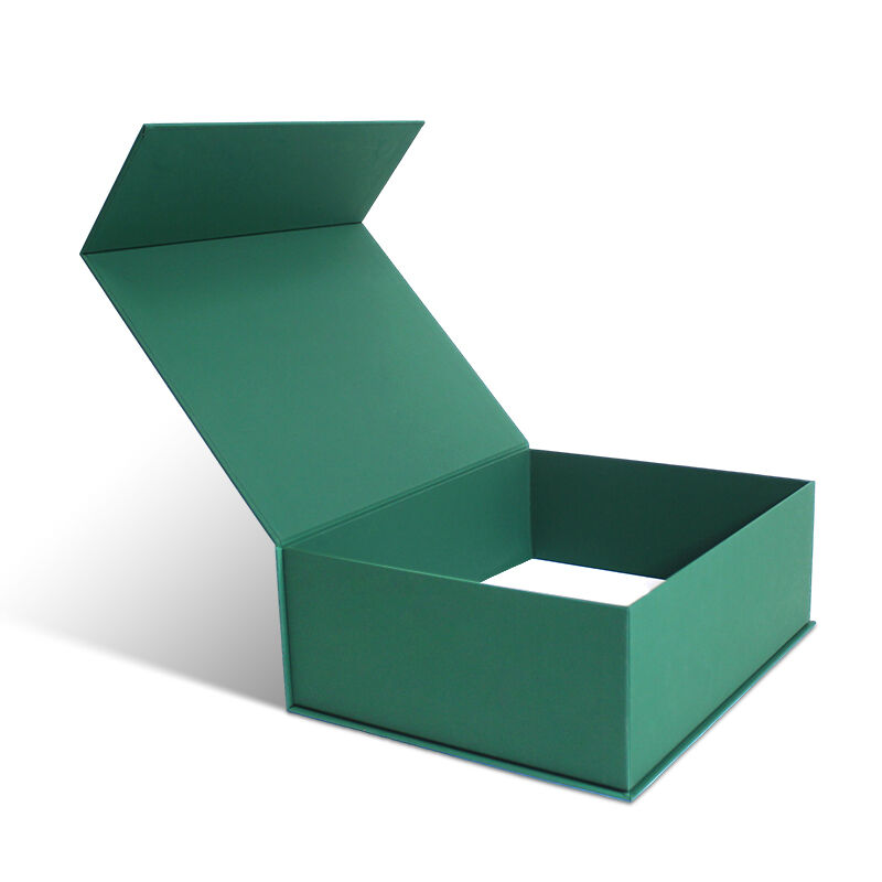 उपहार फ्लिप गत्ते के हरे रंग के कागज चुंबकीय बॉक्स पैकेजिंग फोम इंसर्ट के साथ