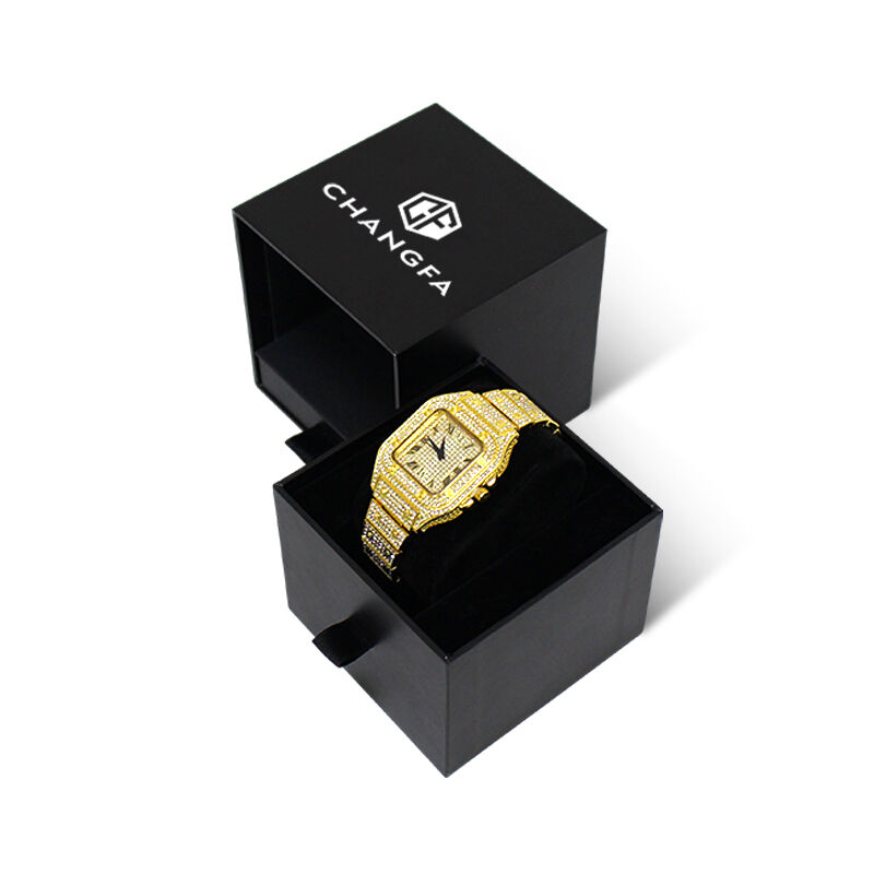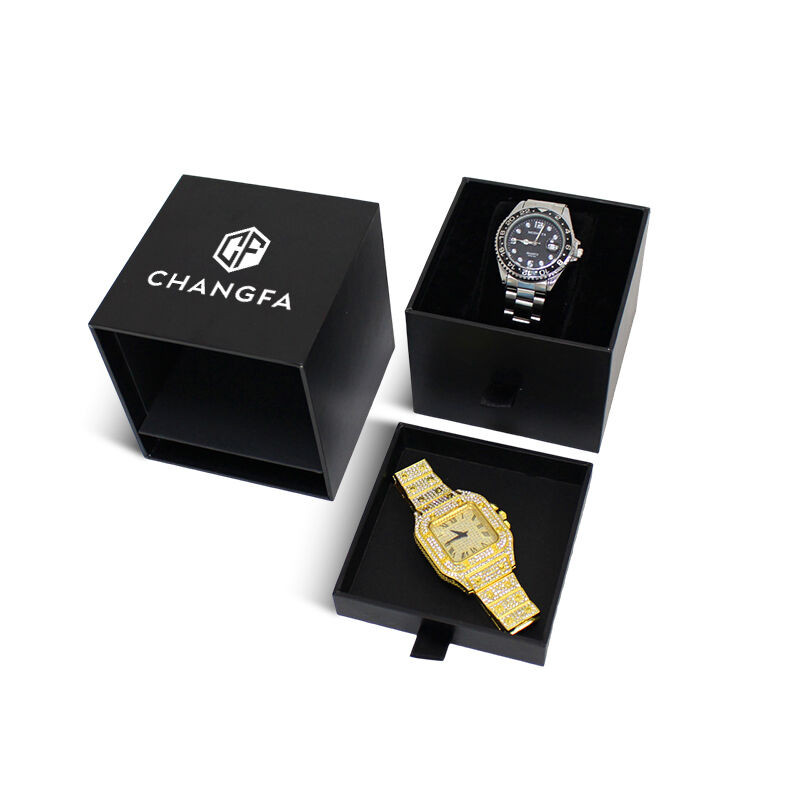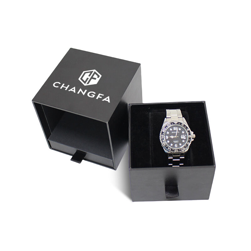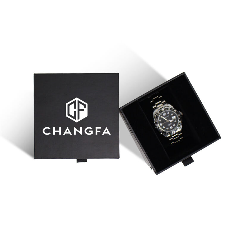 ईवीए इंसर्ट के साथ घड़ी काला कोटेड पेपर ड्रॉयर बॉक्स