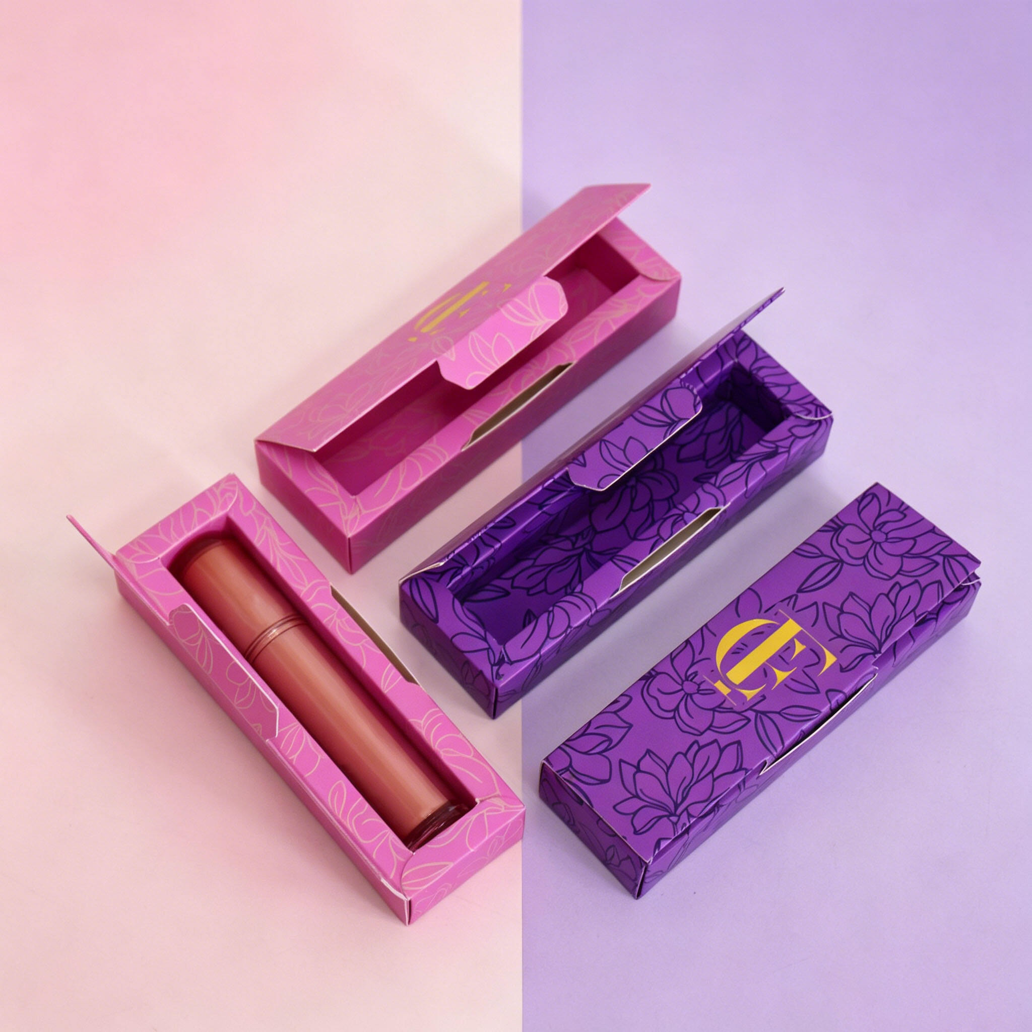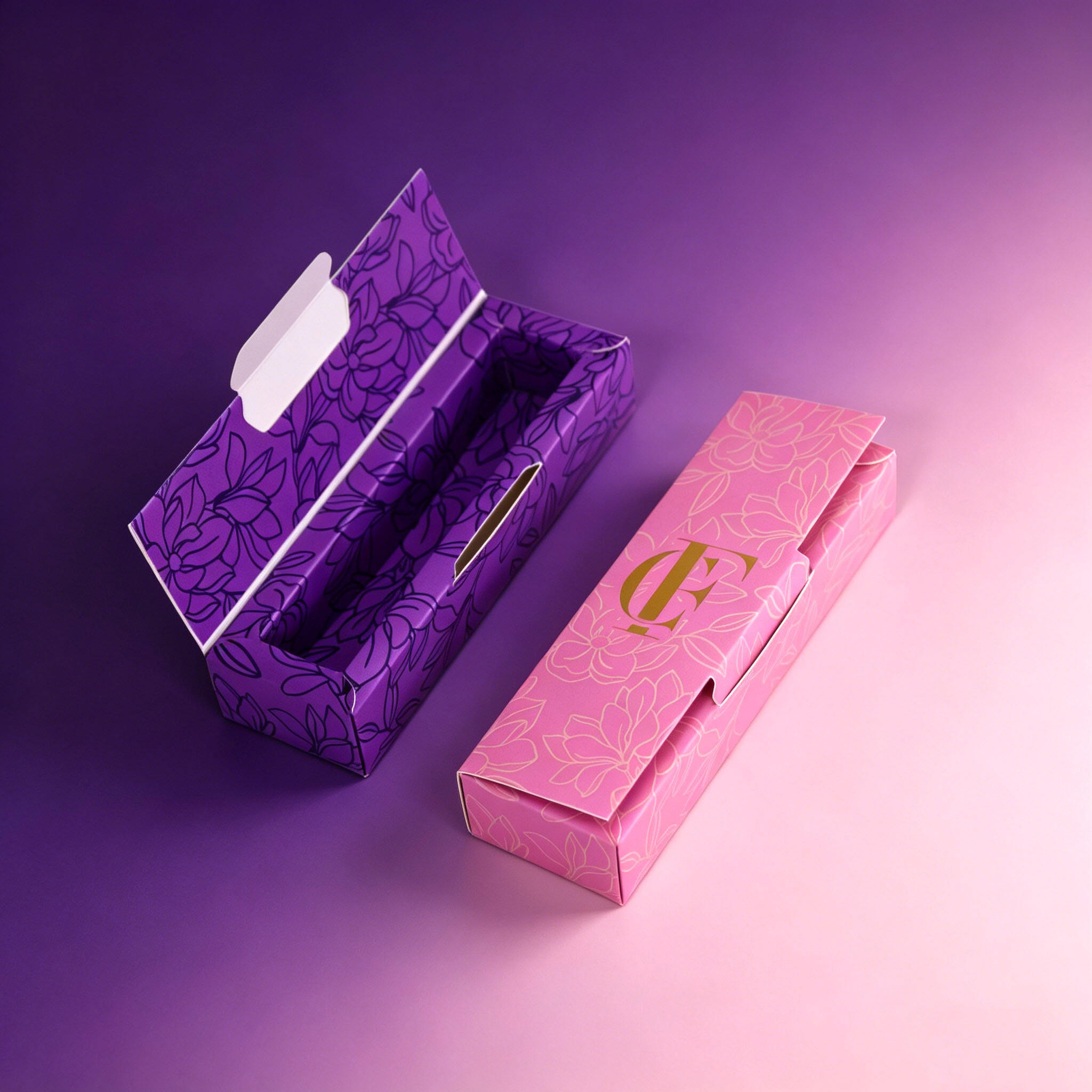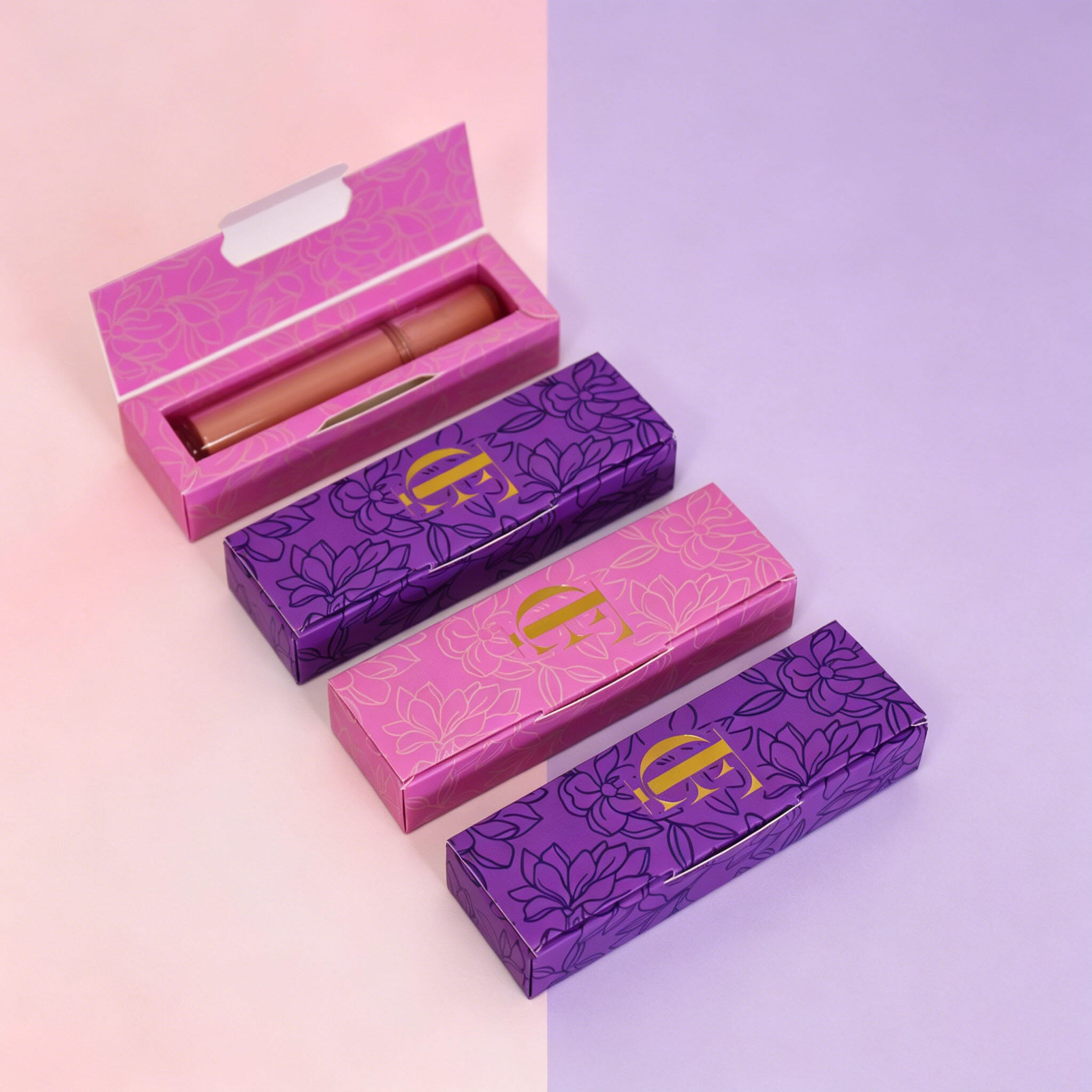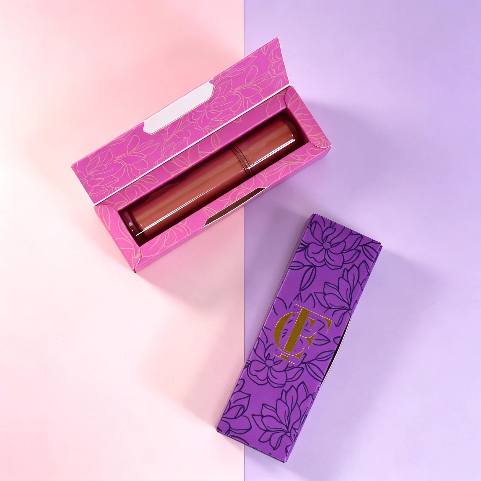 CF egyedi virágos nyomtatású, újrahasznosított anyagból készült kozmetikai papírdoboz ezüst fóliás logó domborítással és UV-feldolgozással szájfény és szájpirító csomagolásához