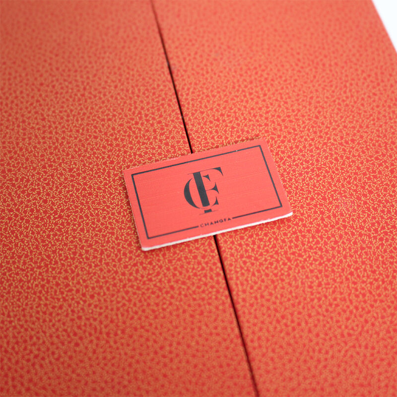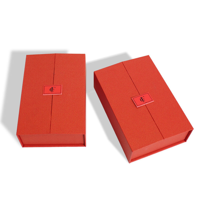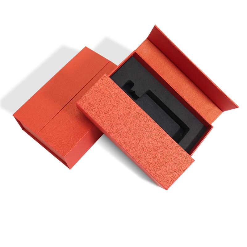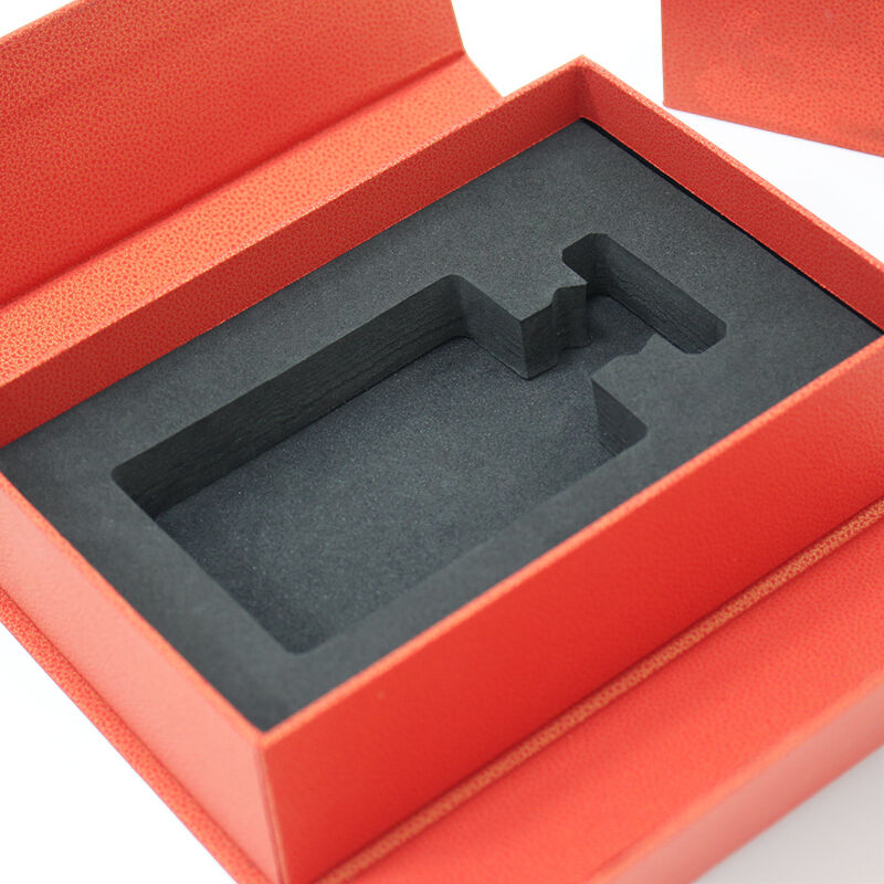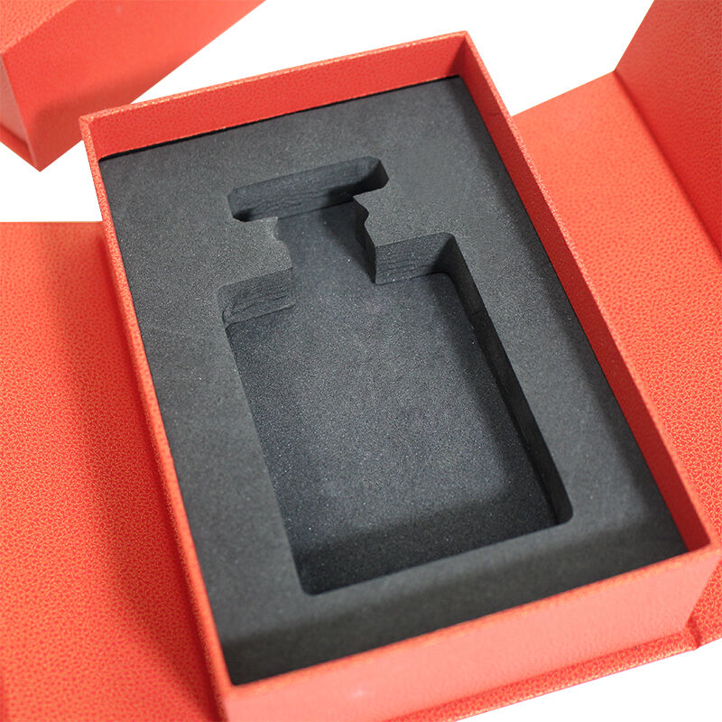 Scatola per profumi arancione con doppia anta e inserto in EVA