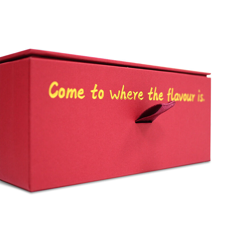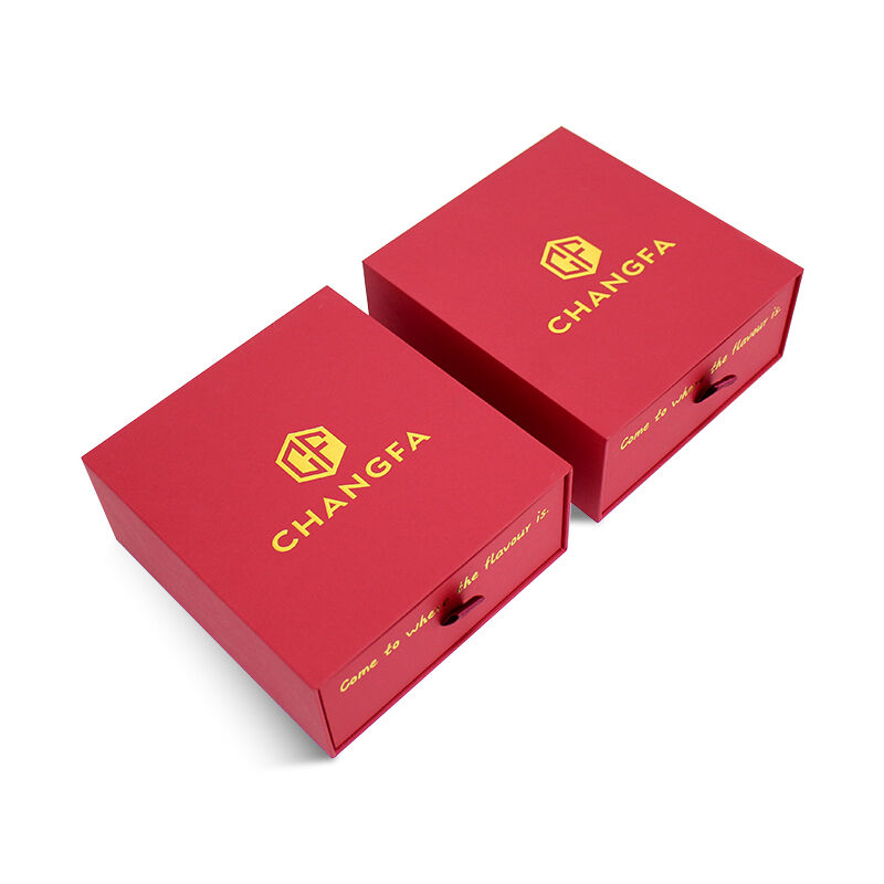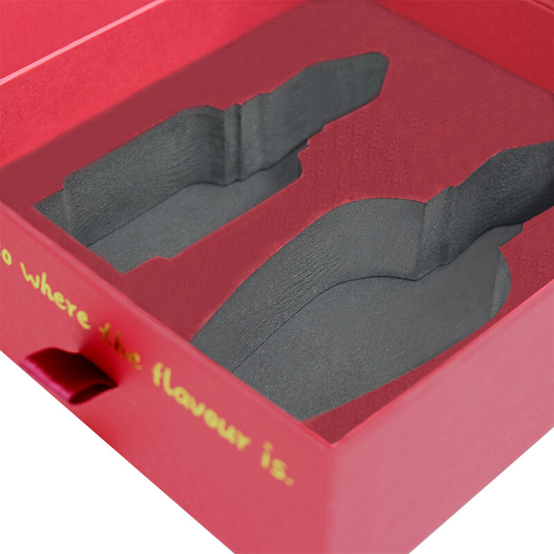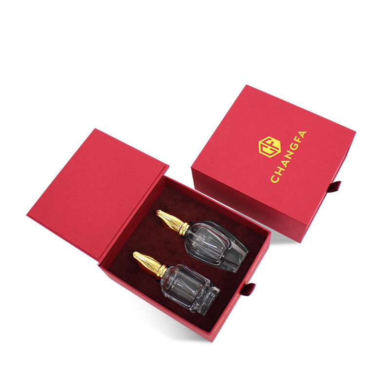 Scatola rossa a cassetto per profumi con imballaggio in cartone e inserto in EVA