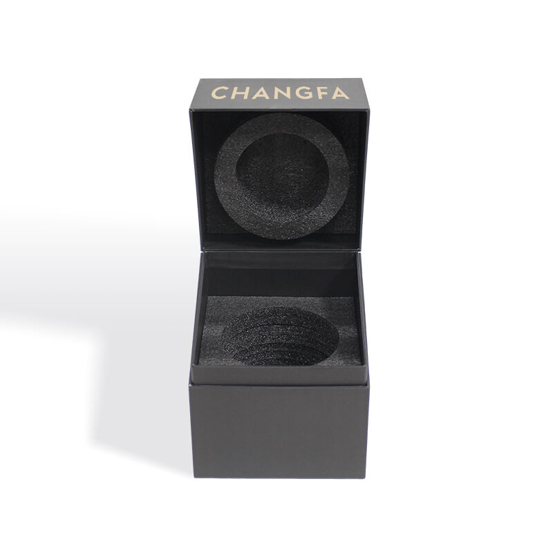 CF ກ່ອງຂອງຂວັນດຳແບບແຂງ ເປີດ-ປິດດ້ວຍການເອີ້ນຂຶ້ນ ມີມຸມເອີ້ນ ສຳລັບເທີຍ