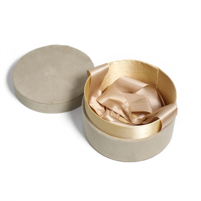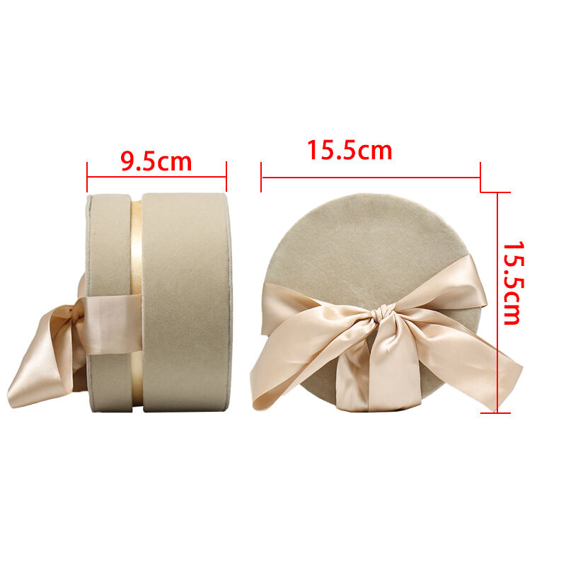 Caixa Redonda em Papelão para Embalagem de Rosas, Caixa de Presente Pronta para Casamento com Tampa em Veludo de Luxo e Impressão em Relevo CF