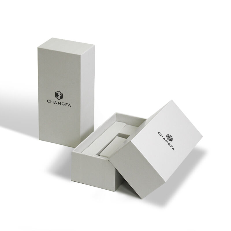 Индивидуальная коробка CF с логотипом: белая жёсткая картонная упаковка с отдельной крышкой и основанием — жёсткая бумажная подарочная коробка