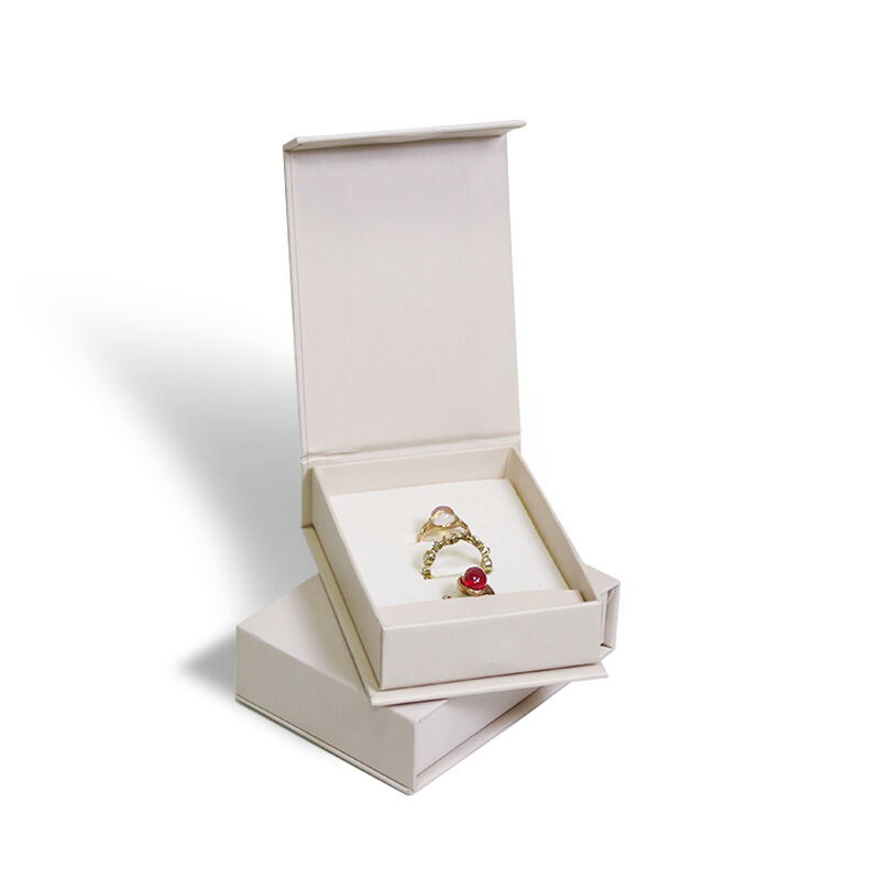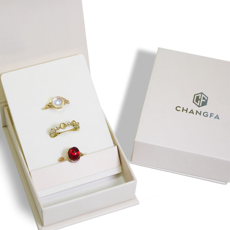 Индивидуальная минималистичная бежевая ювелирная коробка CF с откидной крышкой, премиальная картонная коробка с мягким внутренним покрытием для элегантного хранения колец