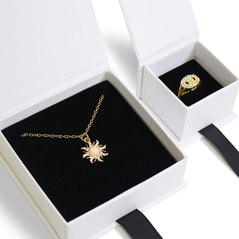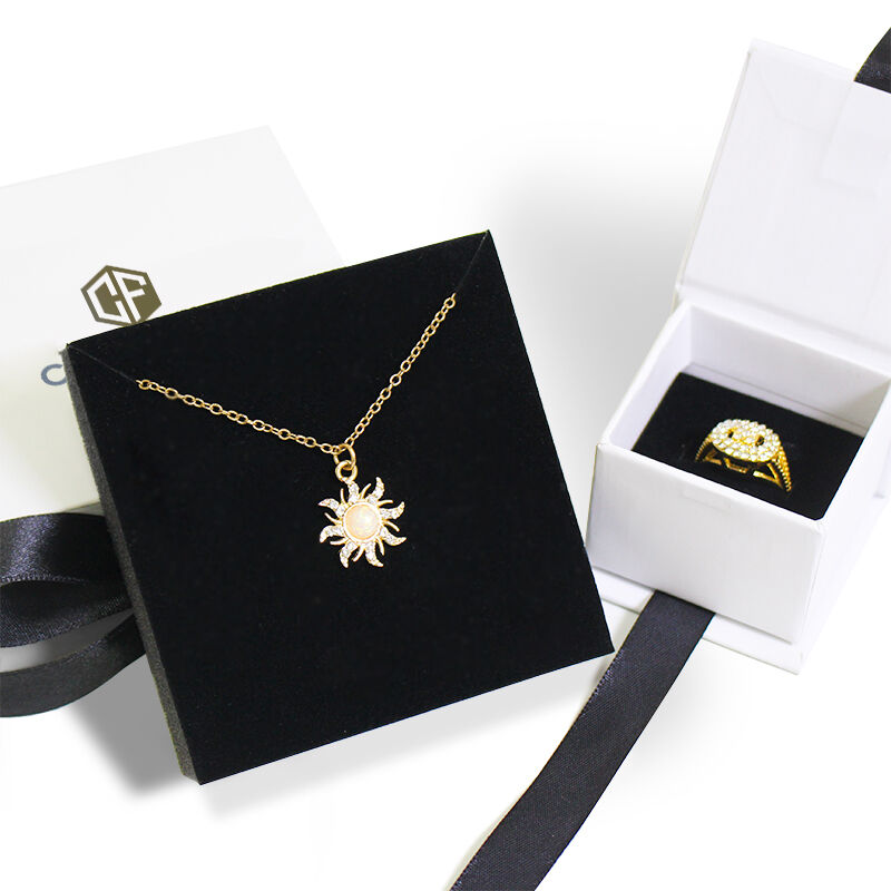 Индивидуальная коробка-ракушка CF с лентой для ожерелий, серёжек и колец — премиальная подарочная упаковка, жёсткая ювелирная упаковочная коробка