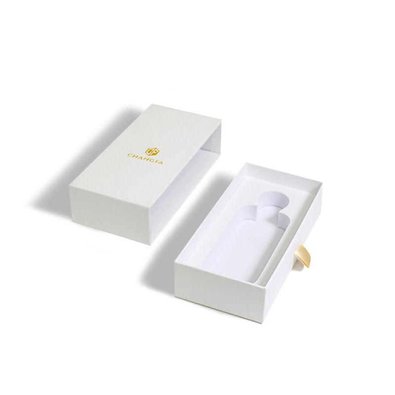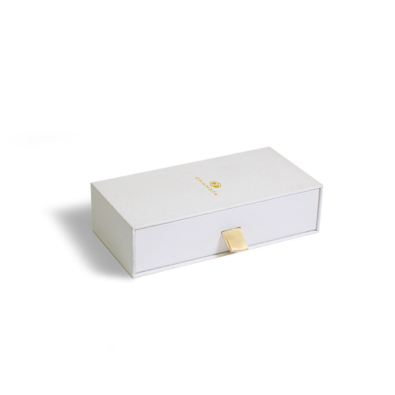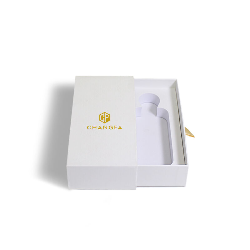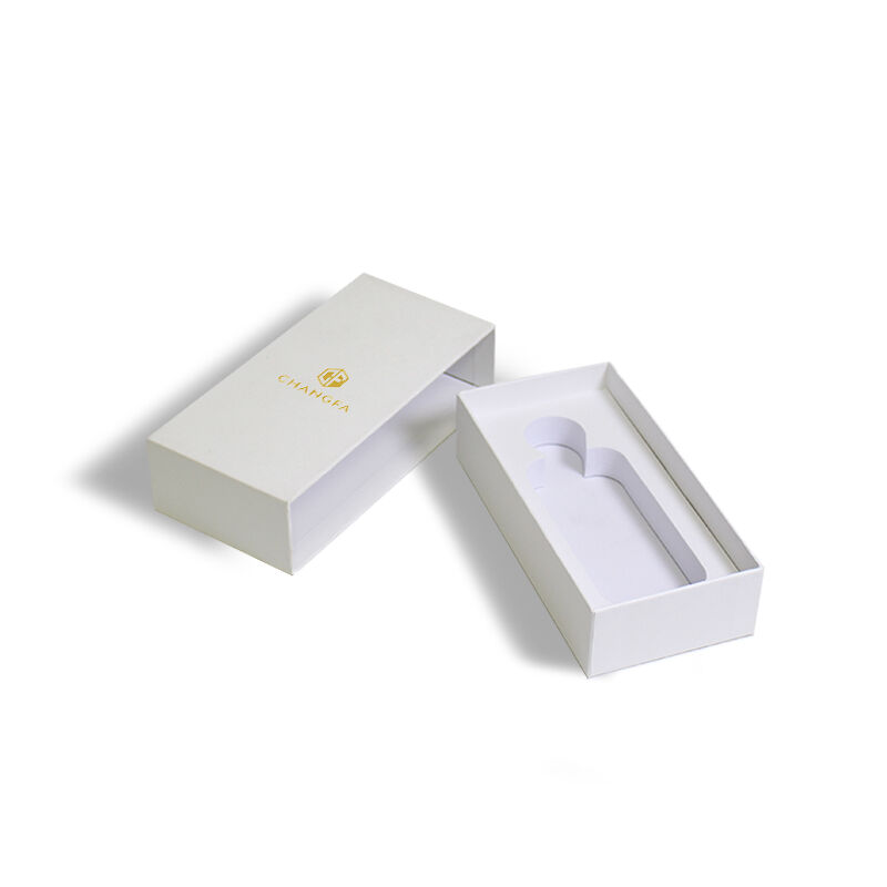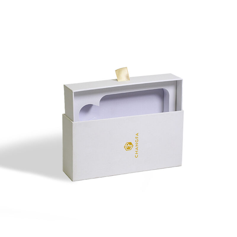 CF Премиальная жесткая выдвижная бумажная коробка в стиле выдвижного ящика с золотым тиснением логотипа, матовой ламинацией и вставкой из поролона EVA