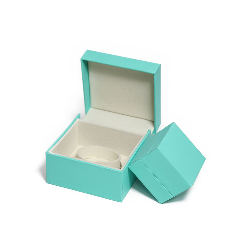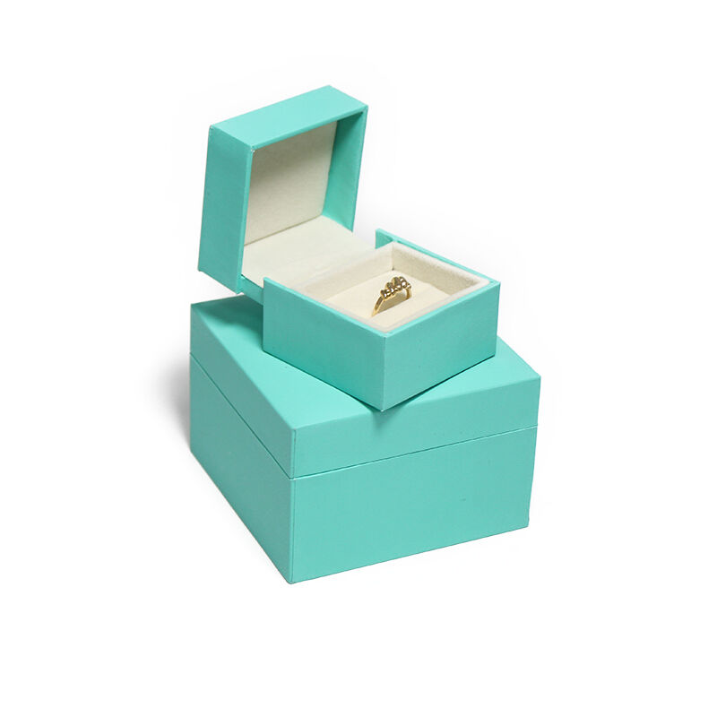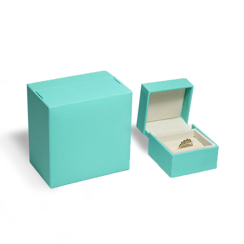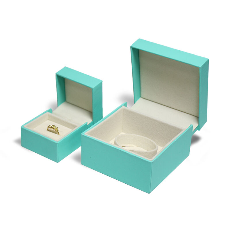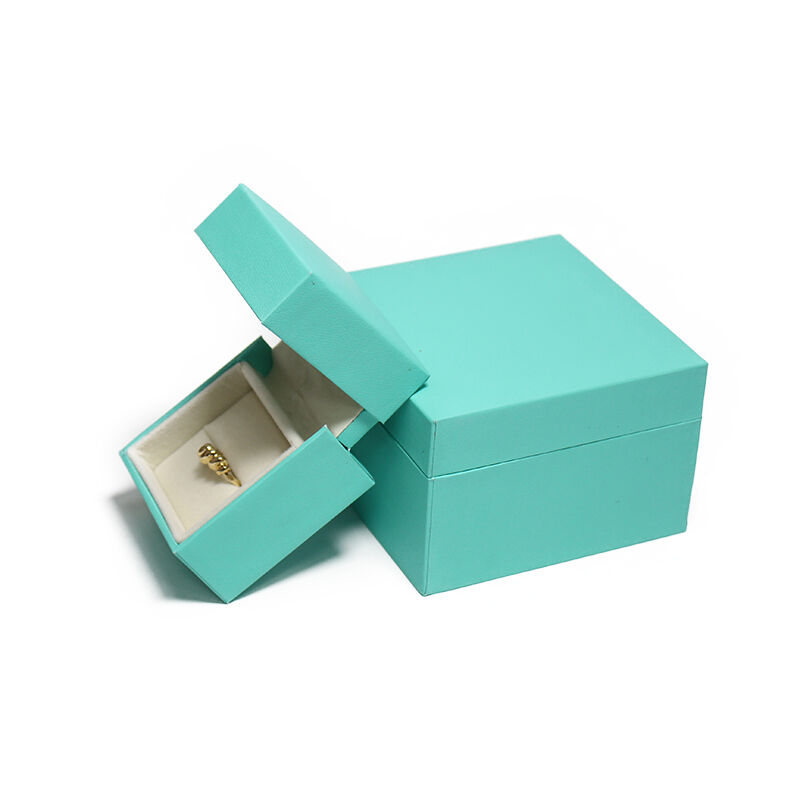 Hộp đựng nhẫn thân thiện với môi trường CF, hộp trang sức kiểu lật lệch màu xanh dương, có thể tùy chỉnh logo, chất liệu da PP, dùng làm hộp đựng vòng cổ
