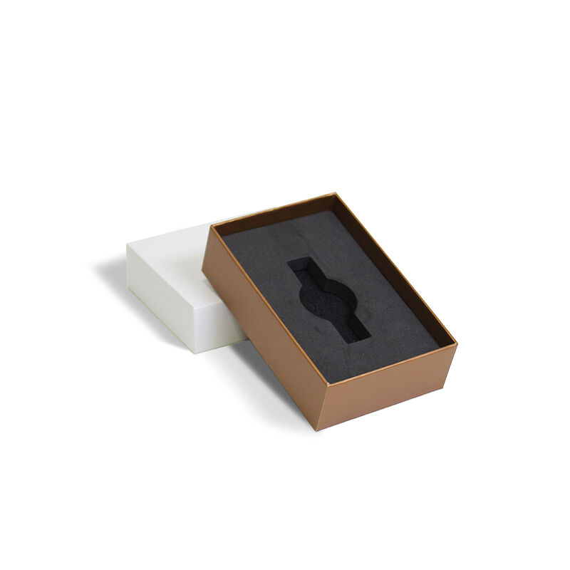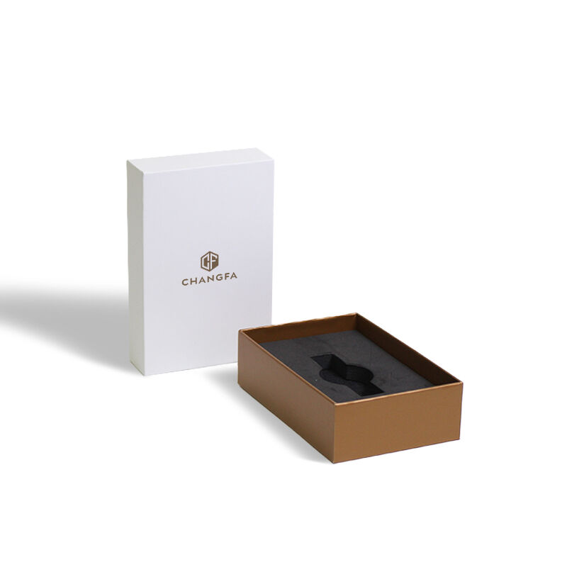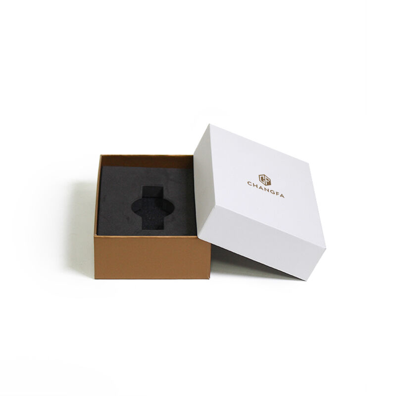 Hộp quà tặng giấy trống chống thấm nước bằng vật liệu tái chế có thể tái sử dụng CF, in mực vàng, hộp đóng gói đồng hồ