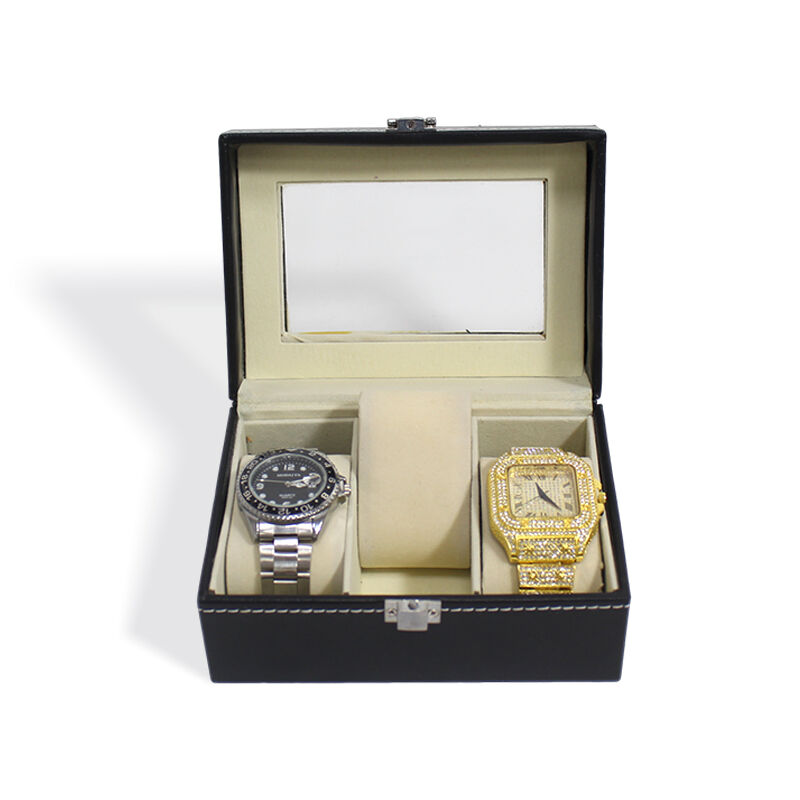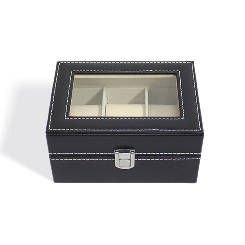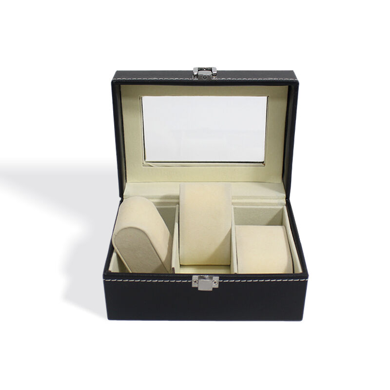 Hộp đóng gói đồng hồ bằng gỗ sang trọng CF, chất liệu da PU, có 3 ngăn và đệm lót