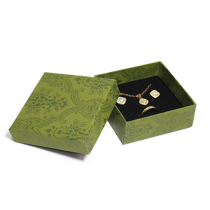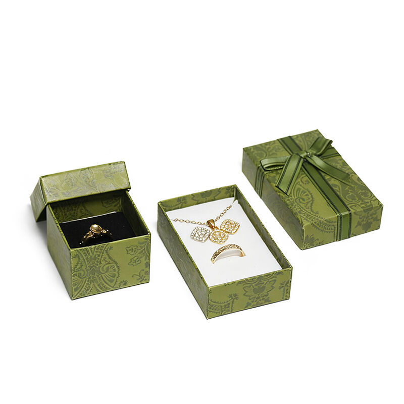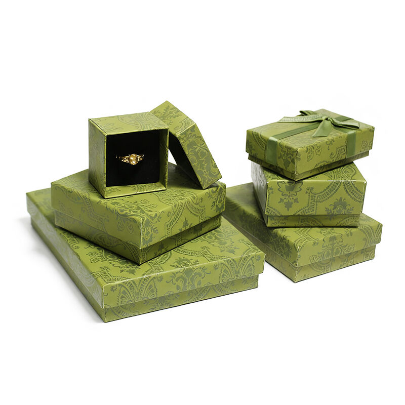 Hộp đựng nhẫn thân thiện với môi trường, hộp trang sức kiểu lật lệch màu xanh lá, có thể tùy chỉnh logo, chất liệu da PP, dùng làm hộp đựng vòng cổ